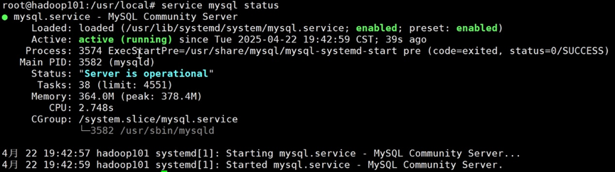 安装完成后,MySQL已经默认启动,可以用以下命令查看状态: