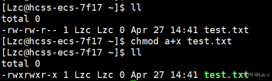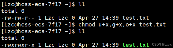 但Lzc用户访问时,确定为所有者,就只看所有者对文件的权限了。