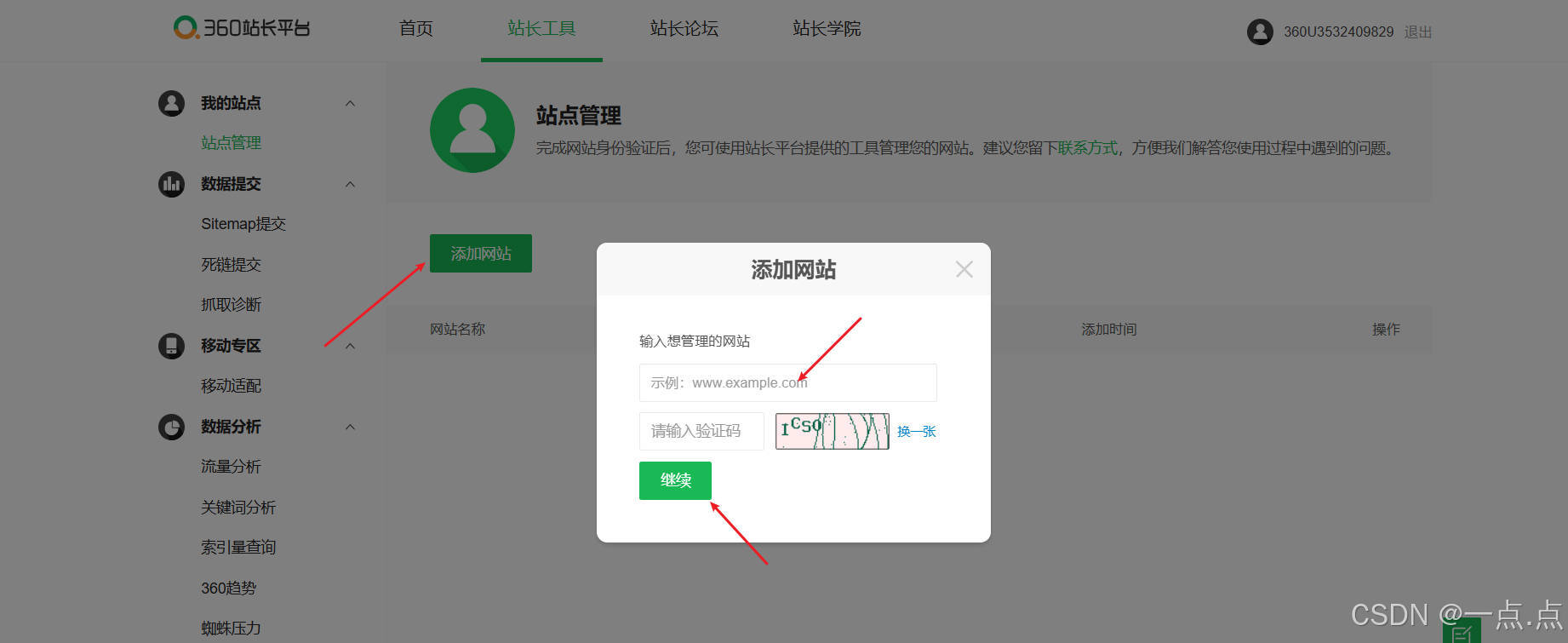 提交链接:360站长平台-站点管理