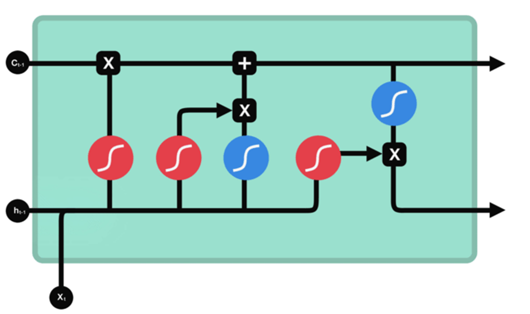 LSTM 单元主要由三个门(输入门、遗忘门、输出门)和一个细胞状态组成: