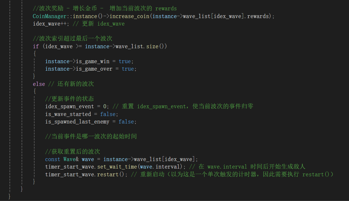 返回 wave_manager.h 在生成敌人计时器触发时,执行生成敌人的逻辑