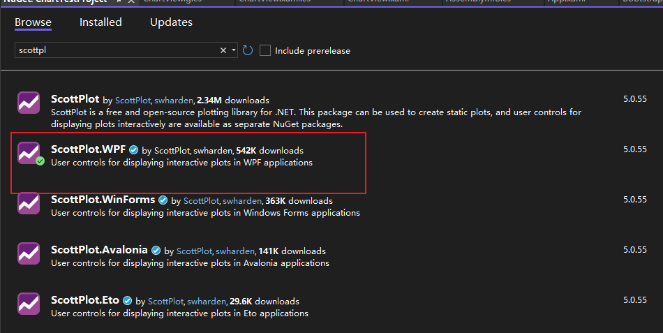 引入程序集ScottPlot.WPF,并添加UI元素WpfPlot,用以绘制图表