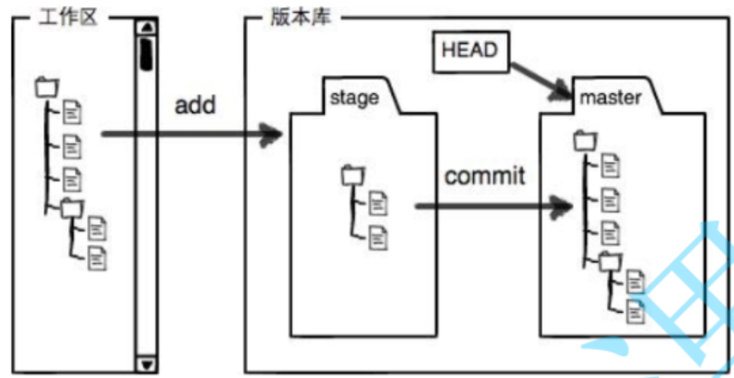 git commit时,master分支会做相应的更新,可以简单理解为暂存区的目录数才会被真正写到版本库中