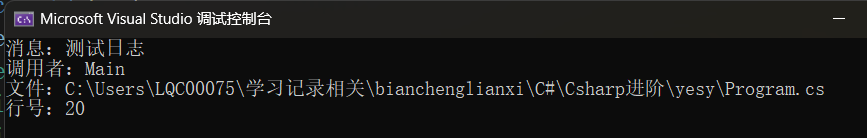 Logger.Log("测试日志"); // 自动填充调用者信息