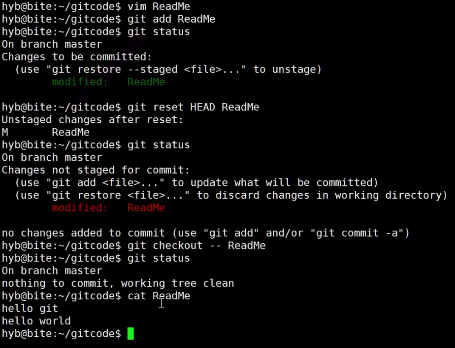 git reset [--soft | --mixed | --hard] [HEAD]