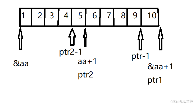 int *ptr1 = (int *)(&aa + 1);//&aa是整个数组的地址 +1跳过整个数组 然后强制类型转换为int*