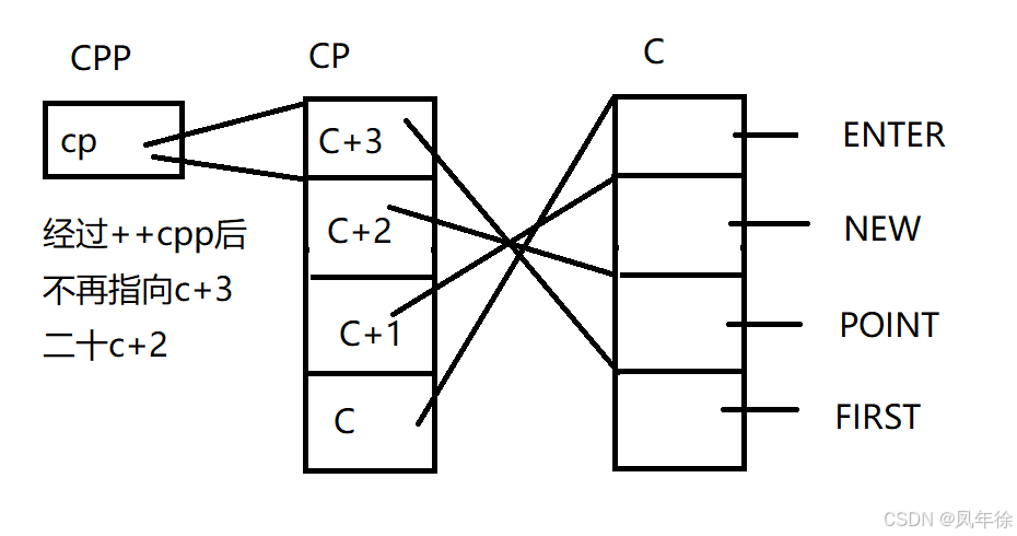对于 printf("%s\n", **++cpp);来说,++cpp拿到c+2的值----也就是c+2的地址 再解引用------------------PONIT
