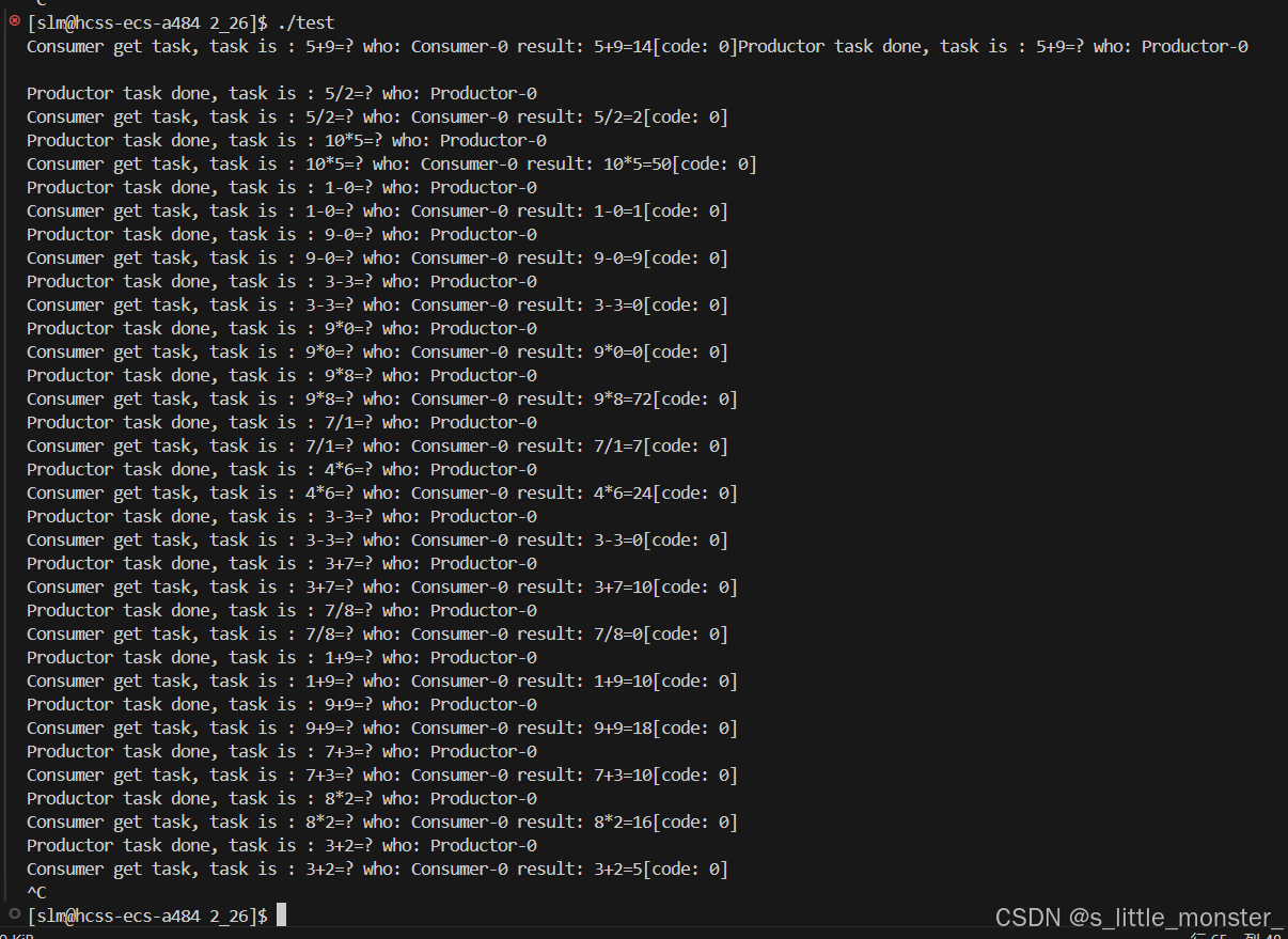 cout << "Consumer get task, task is : " << t.GetTask() << " who: " << name << " result: " << t.GetResult() << endl;