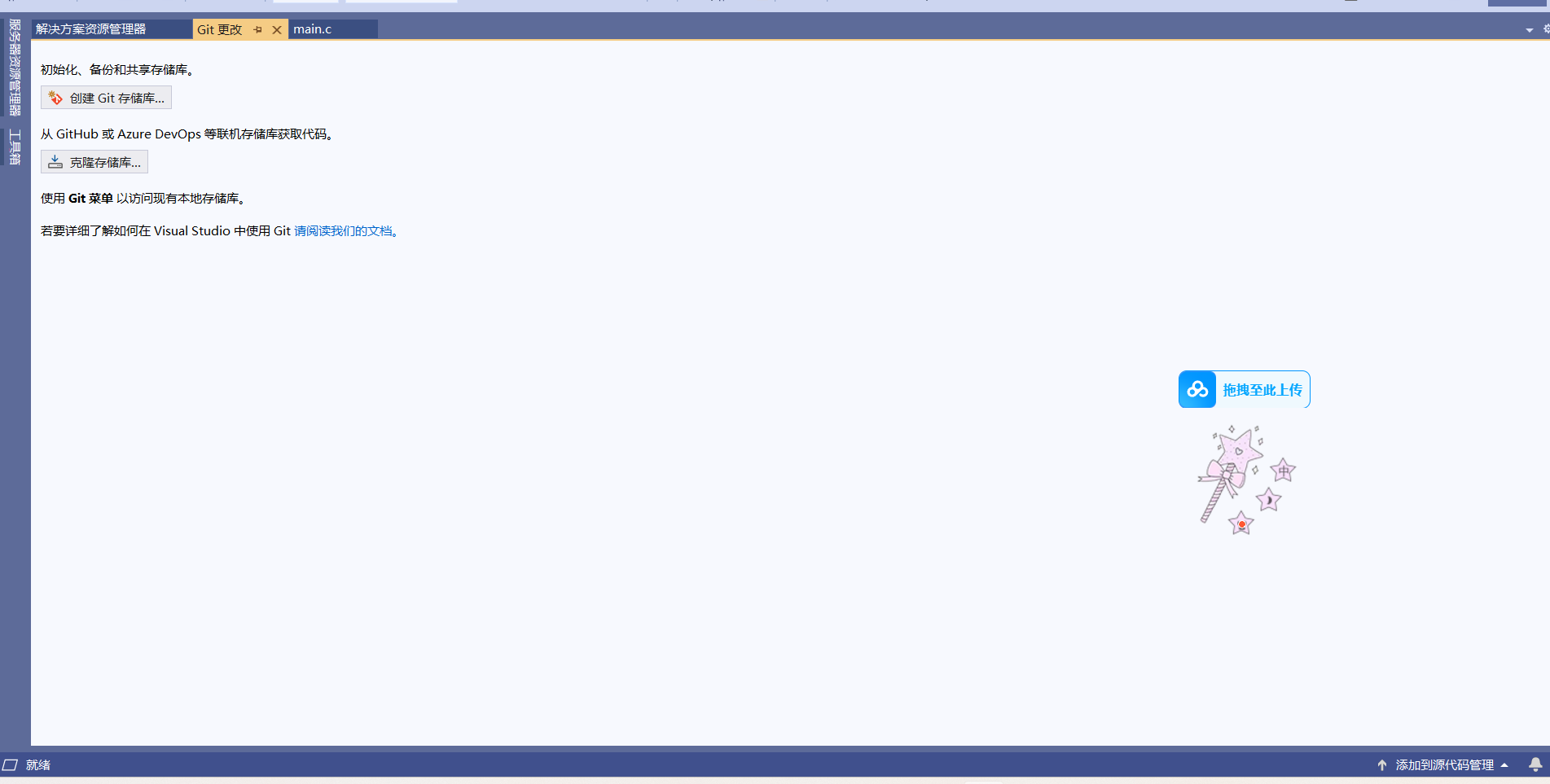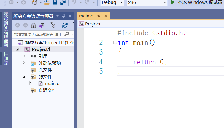 如图11所示,此时,只剩下了【解决方案资源管理器】和【main.c】两个选项卡。在这个基础上,我们来学习方法二里面的方法。