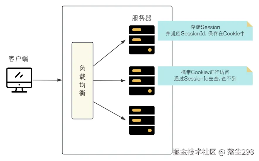 但是正常情况下一个 web 应用是部署到多个服务器上的,通过 Nginx 等进行负载均衡,此时就可能出现这样的情况:用户登录请求之后把 session 存储在了第一台服务器上,但是后续的请求操作,例如查询等,就可能会转发到第二台服务器上,但是第二台服务器没有存储该用户的 session,就会让用户重新登录,这肯定是不合理的