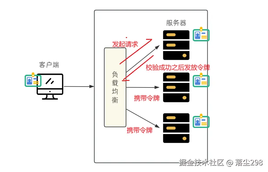 - 第二种方案就是引入 token,也就是令牌,用户登录之后,服务器对账号和密码进行验证,验证通过就生成一个令牌,并返回给客户端,客户端收到令牌之后,把令牌存储起来,之后再发起其他请求就带着令牌,处理请求的服务器校验令牌是否有效即可