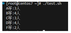 2.编写一个脚本,读取学生分数,结果输出学生的等级的个数(A:90+, B:80+, C:70+, D:60+, F:60以下)。附上所有代码和截图 (10 分)