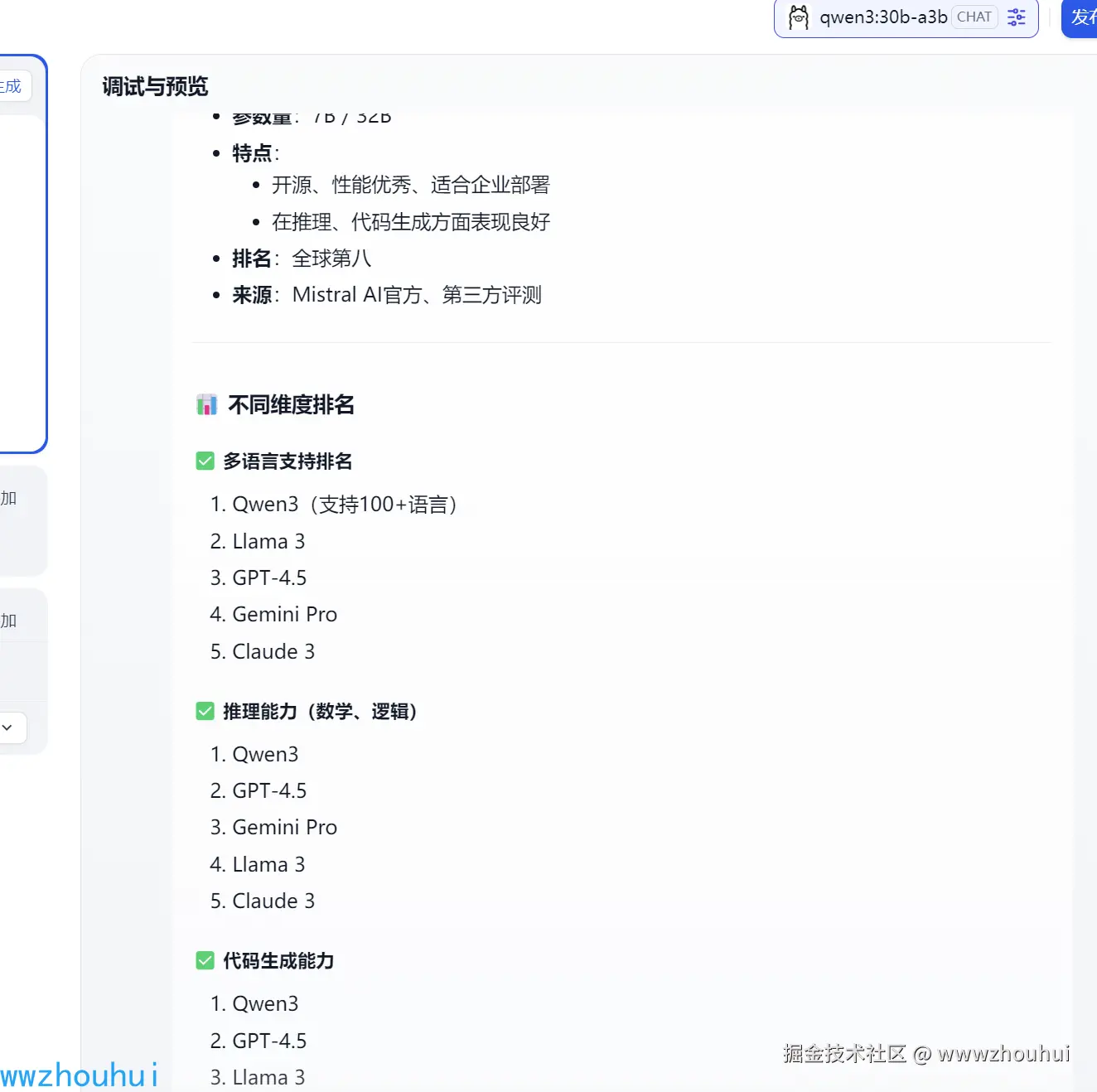 上面我们基本把qwen3在 dify 平台上跑起来了。下面我们重点介绍一下合同评审在这个qwen3模型上的表现。