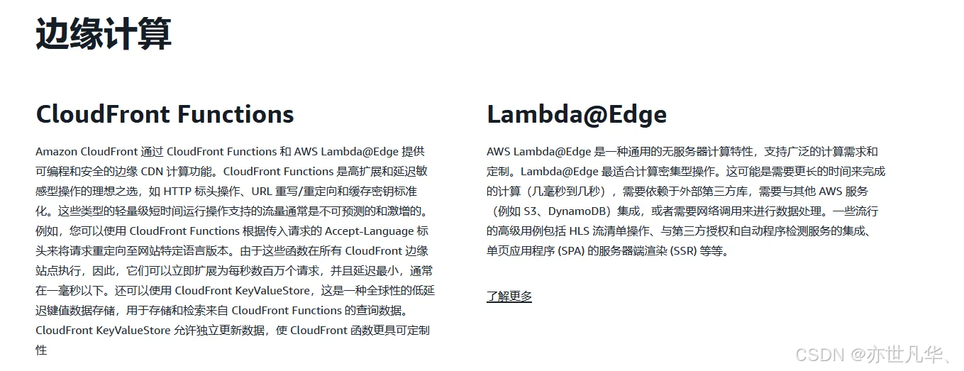 总的来说,CloudFront Functions 的推出为 Amazon CloudFront 增添了更多的功能选项,进一步增强了其作为全球化、高性能应用基础设施的能力。这一更新使得用户能够更加灵活地处理请求分发,并为构建高效、经济的应用提供了更多可能性。