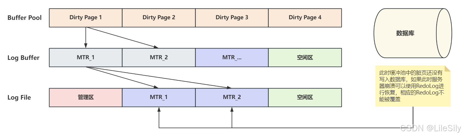- 首先回顾RedoLog的作用,RedoLog是用作崩溃后恢复没有落盘的事务,也就是说,当BufferPool中的脏页写入RedoLog,但是数据页还没有落盘时发生了崩溃,当服务器重启之后根据RedoLog进行恢复,这也是RedoLog的应用时机,所以这种状态下的RedoLog不能被覆盖.