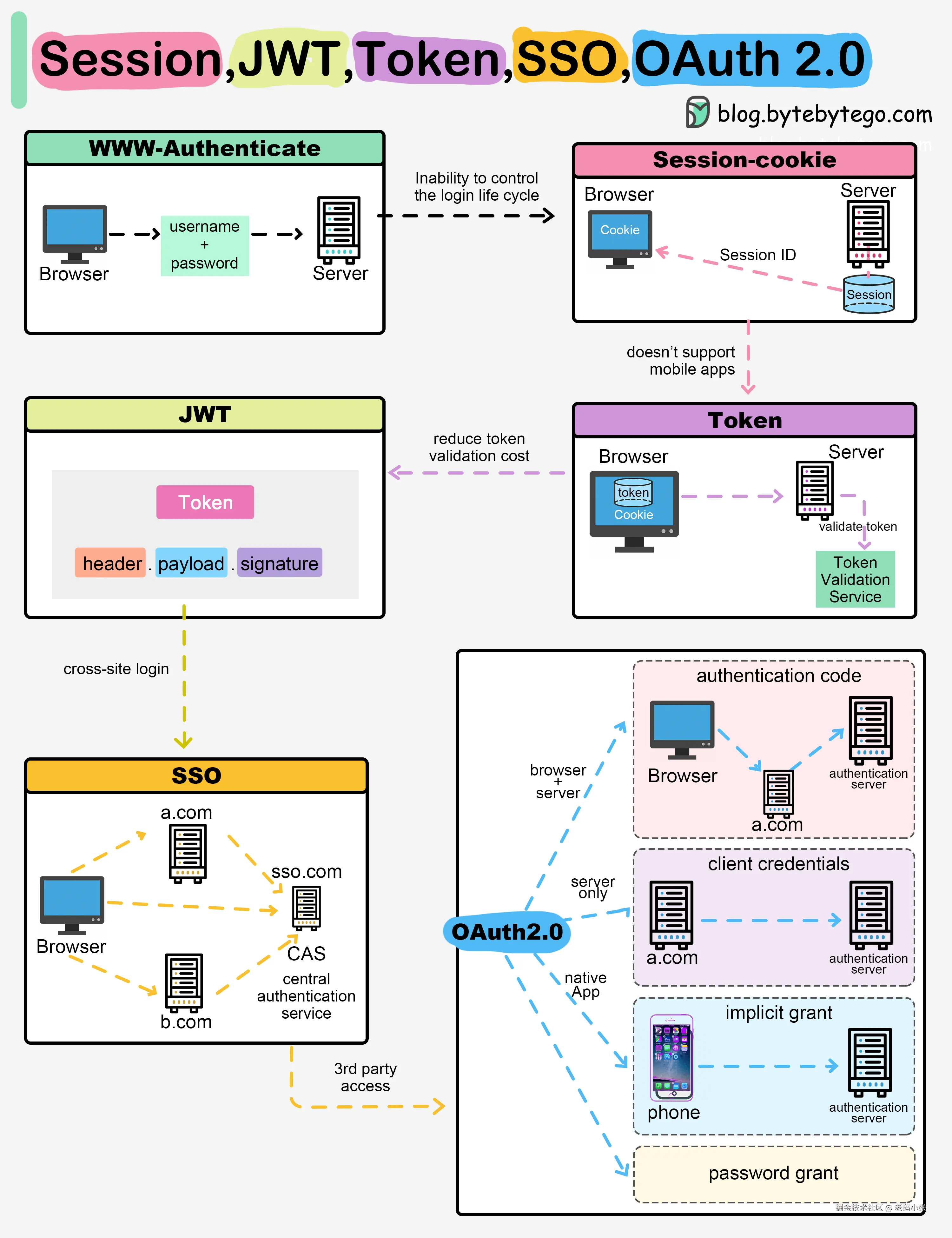 | 扩展性 | 扩展相对麻烦,尤其是在分布式环境下 | 依赖 Cookie,如果客户端禁用 Cookie 就失效;跨域(CORS)场景处理比较麻烦 |
