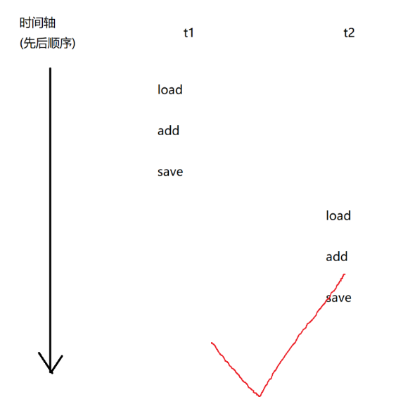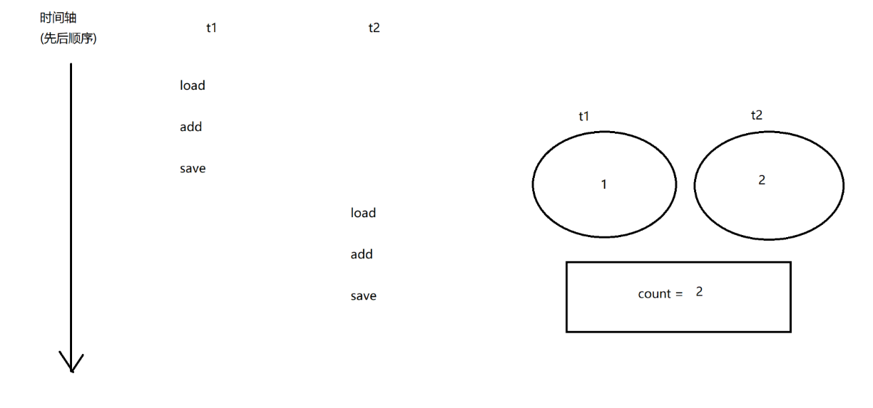 t1和t2两个线程,在同时修改count这个变量,并且修改操作不是"原子的"*,这就会产生bug。