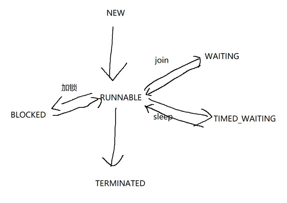 TERMINATED:工作完成了。(线程执行完了(入口方法结束了),但是Thread对象还在)