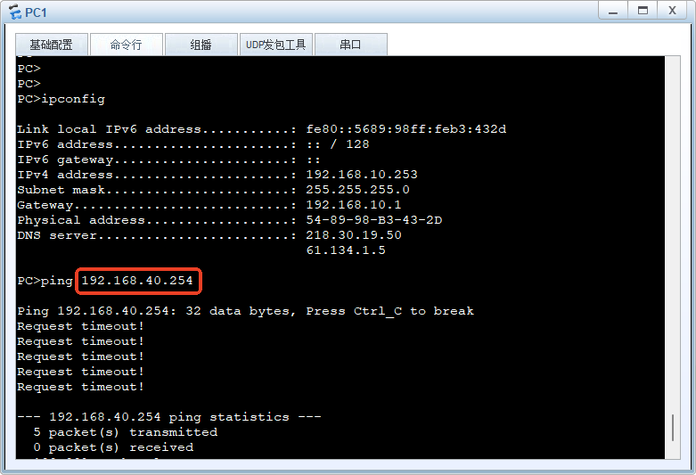 ③PC1 ping PC 不通 (生产部门与管理部门之间不可访问)