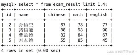 6. 需要排序好后再分页查看,比如要查看5到10名的成绩,则需要排升序,再分页