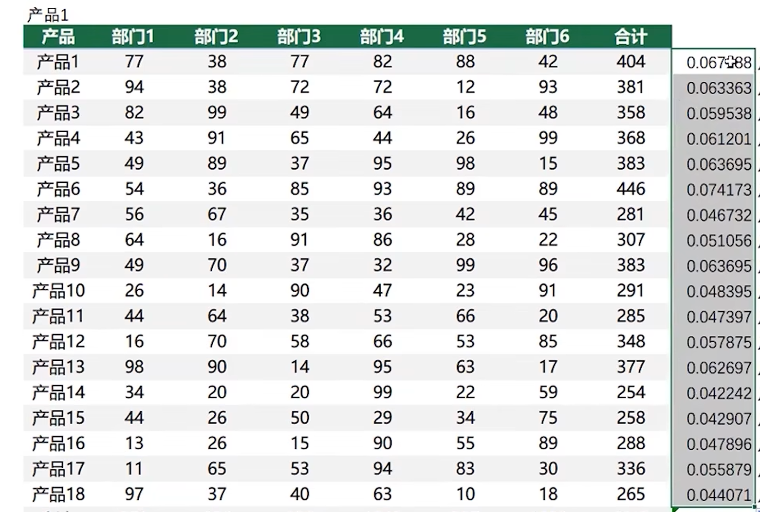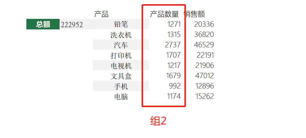 若想知道每个产品的总占比,要用产品的总和/所有产品的合计。