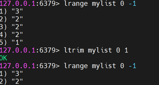 (10)ltrim key start stop
