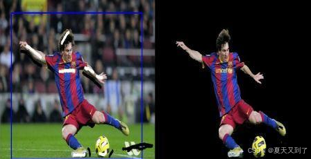 首先将球员和足球包含在蓝色矩形框里,然后用白色笔(指出前景)和黑色笔(指出背景)来做一些润色。后台会发生什么呢?