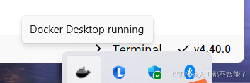 运行 :Docker 启动之后会在 Windows 任务栏出现鲸鱼图标。
