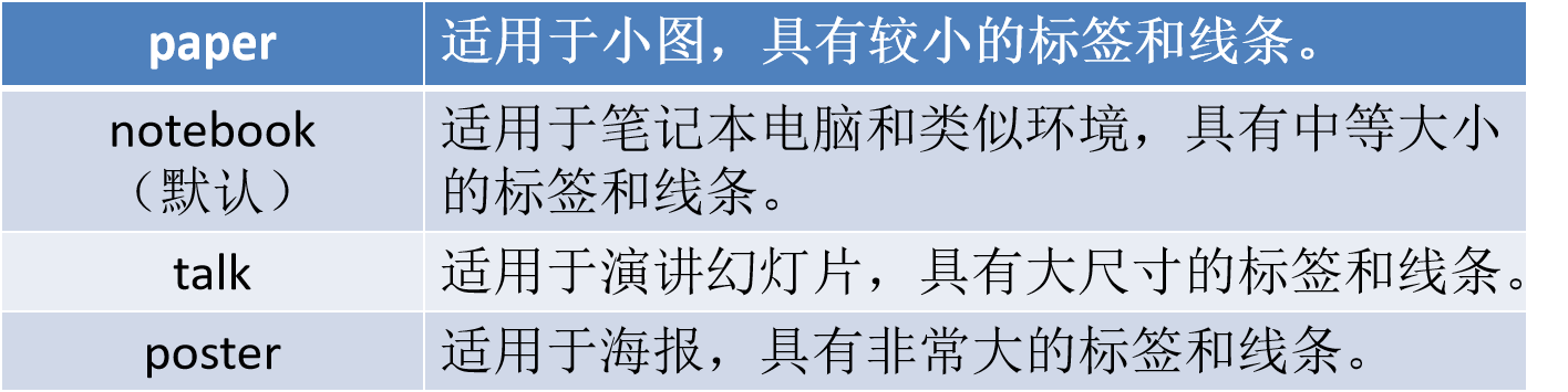 格式为sns.set_theme(style="whitegrid", context="paper") context取值如下: