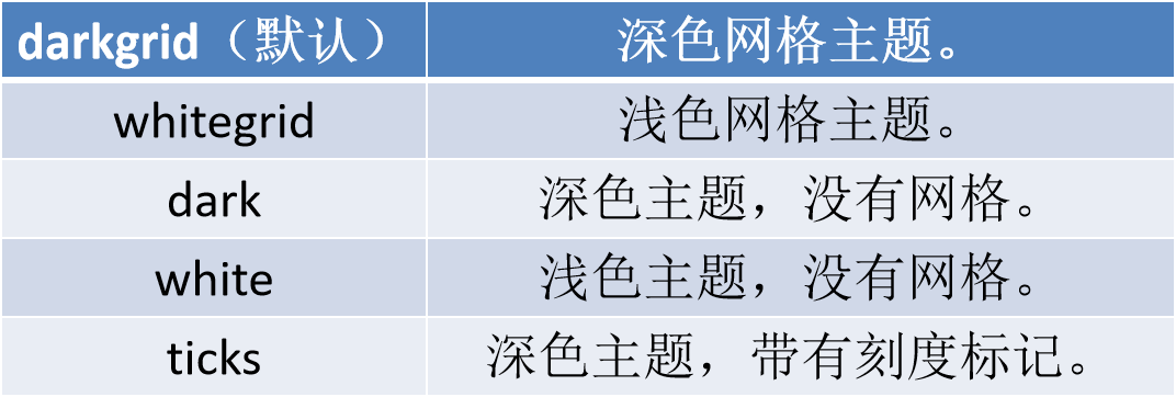 格式为sns.set_theme(style="whitegrid", context="paper") style取值如下: