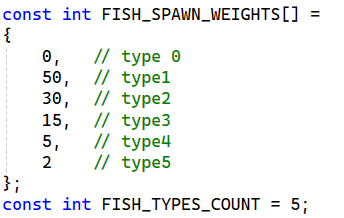 我需要不同种类的鱼的生成概率,而且要集成(即一个模块专门处理概率这件事,不要用一堆常量去定义概率)