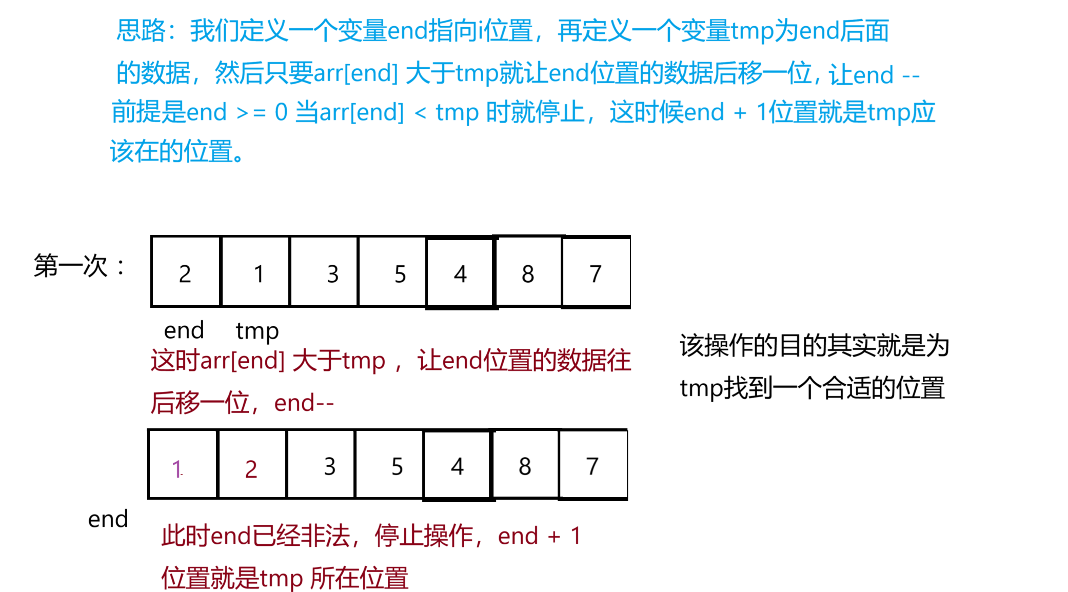 当插入第 i(i>=1) 个元素时,前面的 array[0],array[1],...,array[i-1] 已经排好序,此时