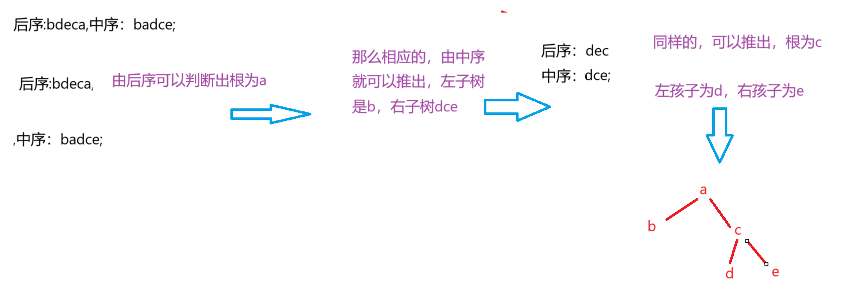 后序:bdeca,中序:badce;