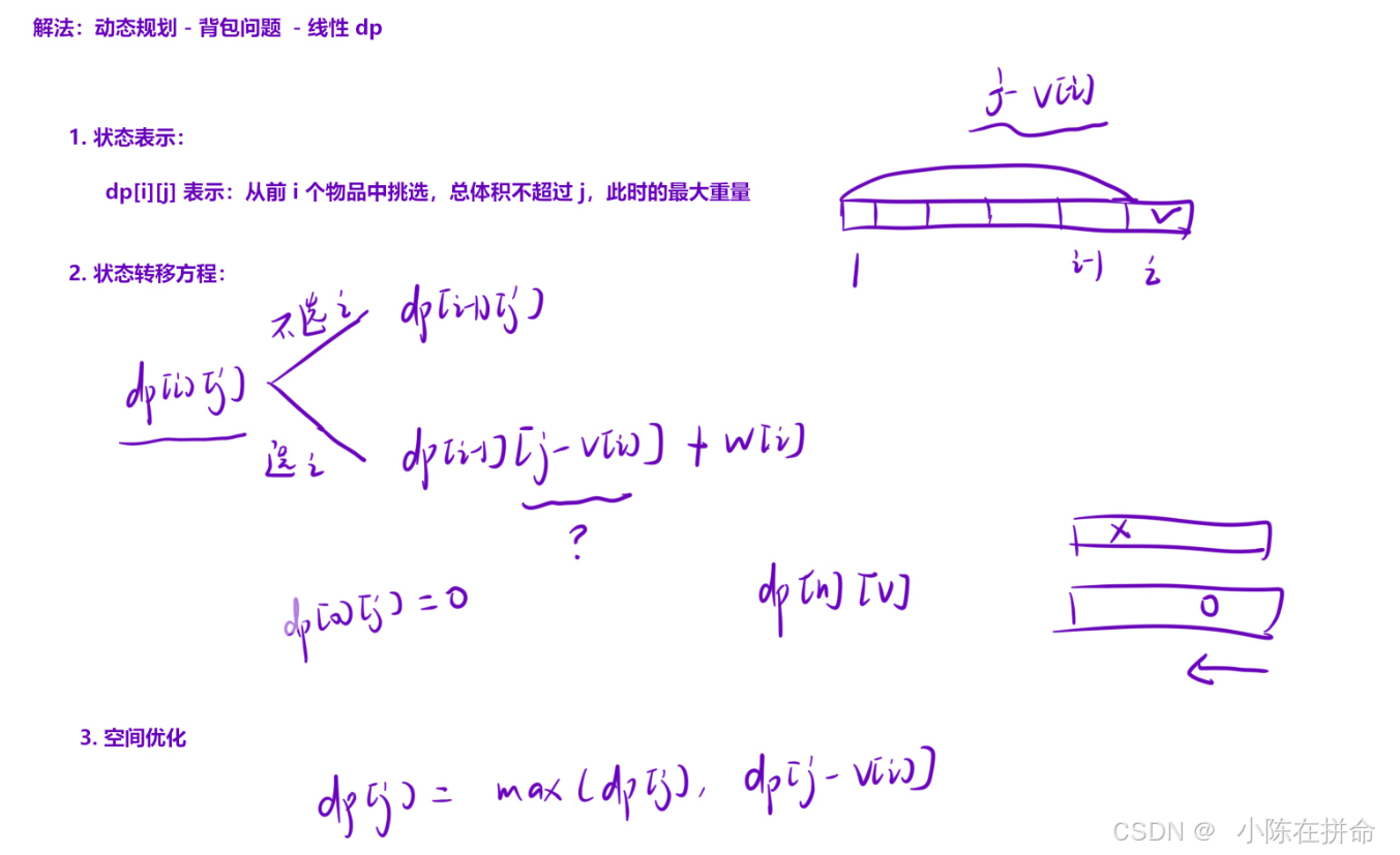 //dp[i][j]表示从前i个物品选,体积不超过j的最大重量