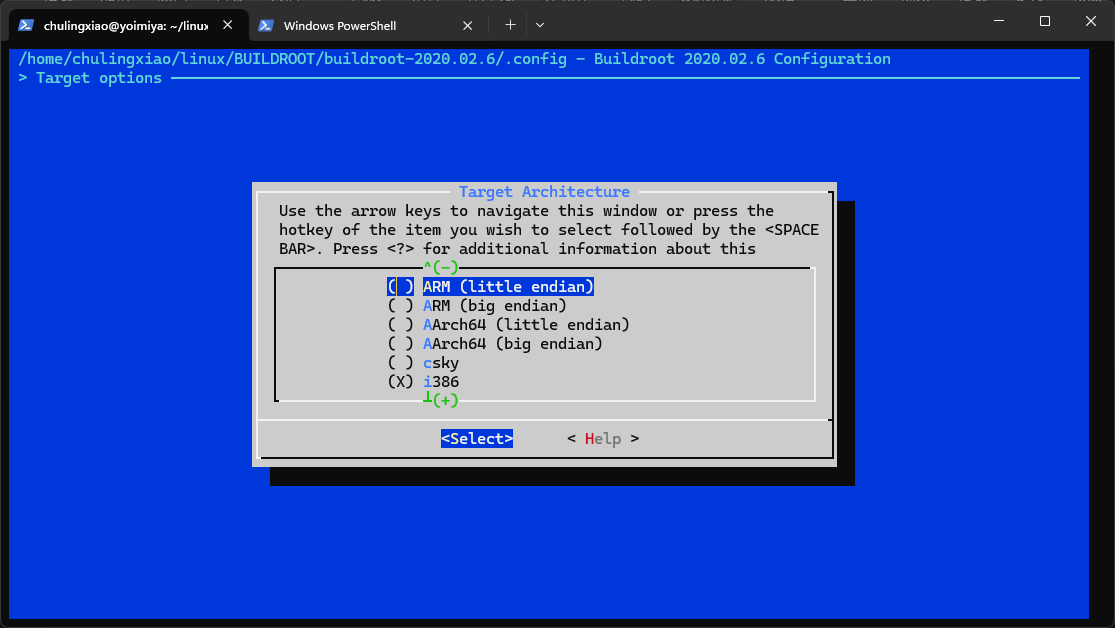 这里我们选择"Target Architecture (i386) ---> "回车进入,进图后可以看到以下选项: