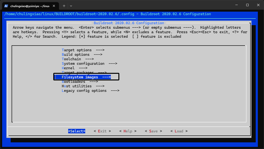 这些就是Buildroot的源码文件,下面我们来配置Buildroot,Buildroot是支持图形化配置的,所以我们可以直接在Buildroot的源码目录下输入下面的命令来启动图形化配置: