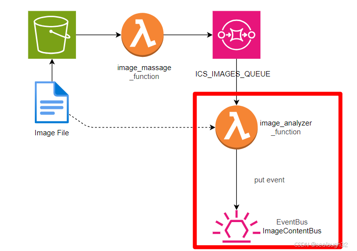 image_analyzer_function保存分析结果到event_bus之中,这里继续将event_rule.add_target(_event_targets.LambdaFunction(image_data_function)),之后image_data_function会将数据保存到数据库。