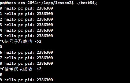 std::cout<<"信号获取成功 ->"<<sig<<std::endl;