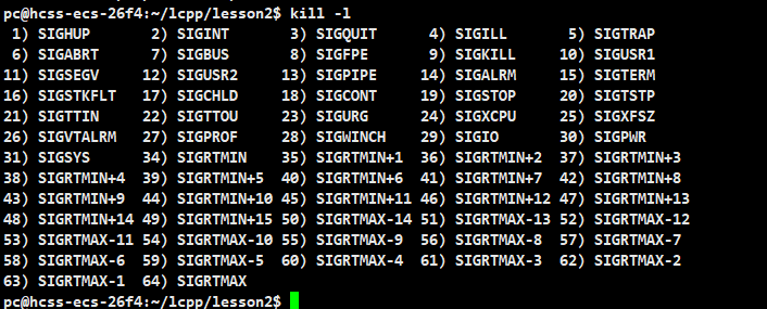 上面的SIGHUP、SIGINT本质就是define宏定义,上面的1~31是普通信号,34~64信号是实时信号。
