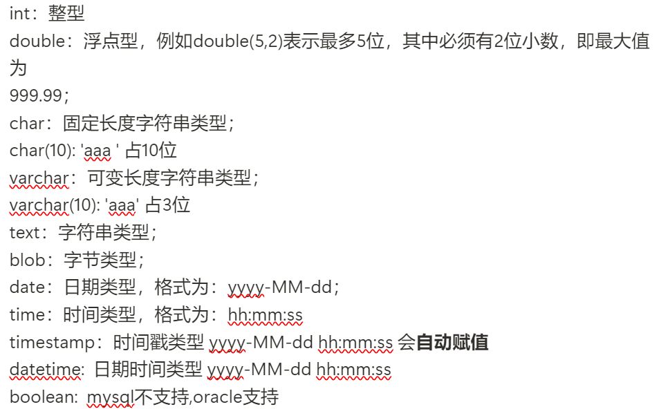 0、常见的数据类型:
