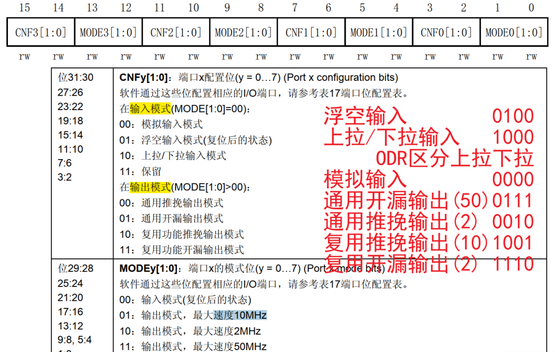 (3) 先配置 MODE 的两位,确定好输入和输出模式