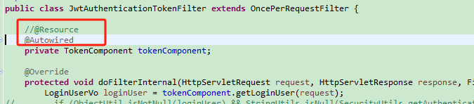原因分析:过滤器找不到tokenComponent绑定,其实就是@Resource注解没有把这个注入,而导致过滤器启动失败,改成@Autowired注入即可。