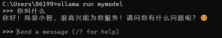 ollama create mymodel -f C:\Users\86199\AppData\Local\Ollama\Modelfile