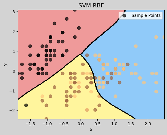 分别使用 rbf 核、degree=2,3,4 的 poly 核的 SVM 对实验数据(5)中生成的数据进行分类,并画出分类界面。