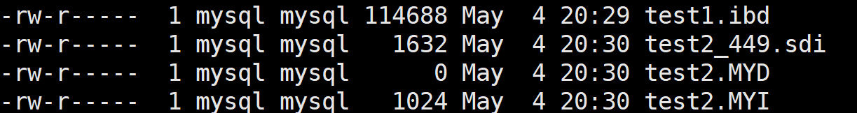 其中test2这两个文件里面myd就是数据,myi就是索引结构
