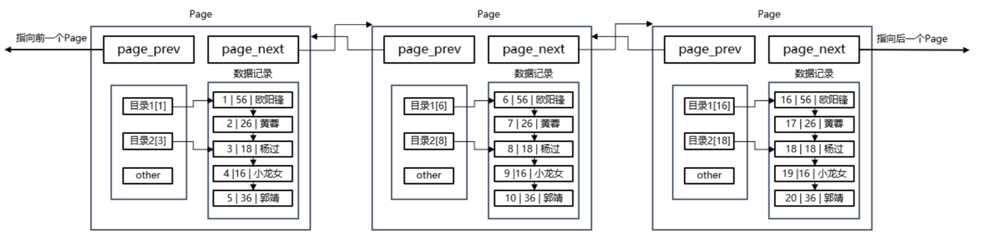 在MySQL内部一定会存在大量的page,那么就需要将这些大量的page通过B+树进行管理-----先描述,再组织,所以这些page内也会存在指向下一个page的指针,所以不能将page认为仅仅是一个内存块,page内部也必须写入对应的管理信息: