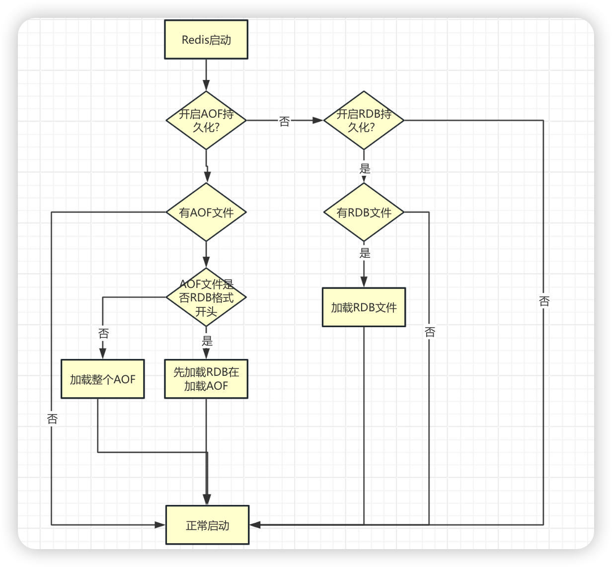 - 如果只开启了AOF持久化,Redis启动时只会加载AOF文件进行数据恢复