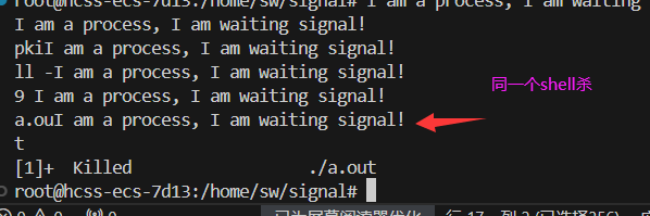 下面我们简单举一个linux产生信号并处理它的过程(可能会有接口函数或者其他;后面会讲;只看效果):