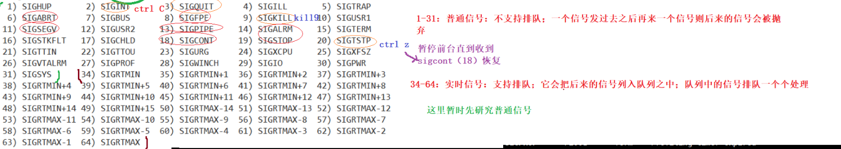ctrl z:20 SIGTSTP:可以发送停止信号,将当前前台进程挂起到后台.(terminal stop)