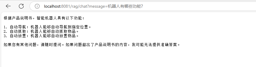 //localhost:8081/rag/chat?message=机器人有哪些功能?